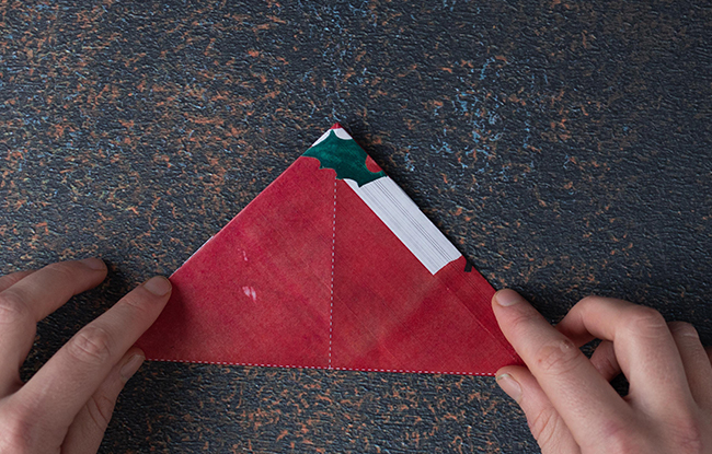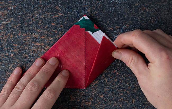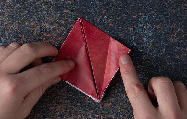 5. Fold the bottom corner up to the top corner to create a red triangle.
